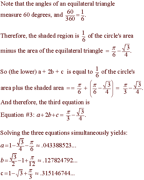 For a third equation, draw the equilateral triangle shown in red in the figure below: