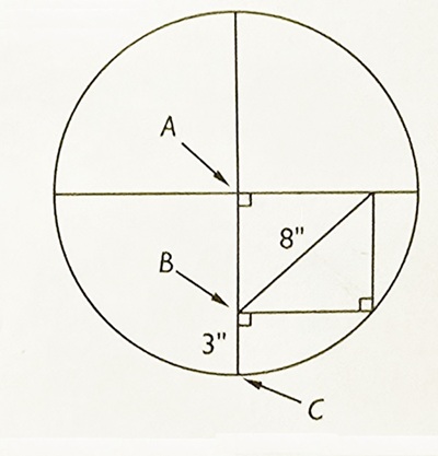 The diagonal of 8 inches is equal in length to the radius of the circle since the diagonals of a rectangle are congruent.